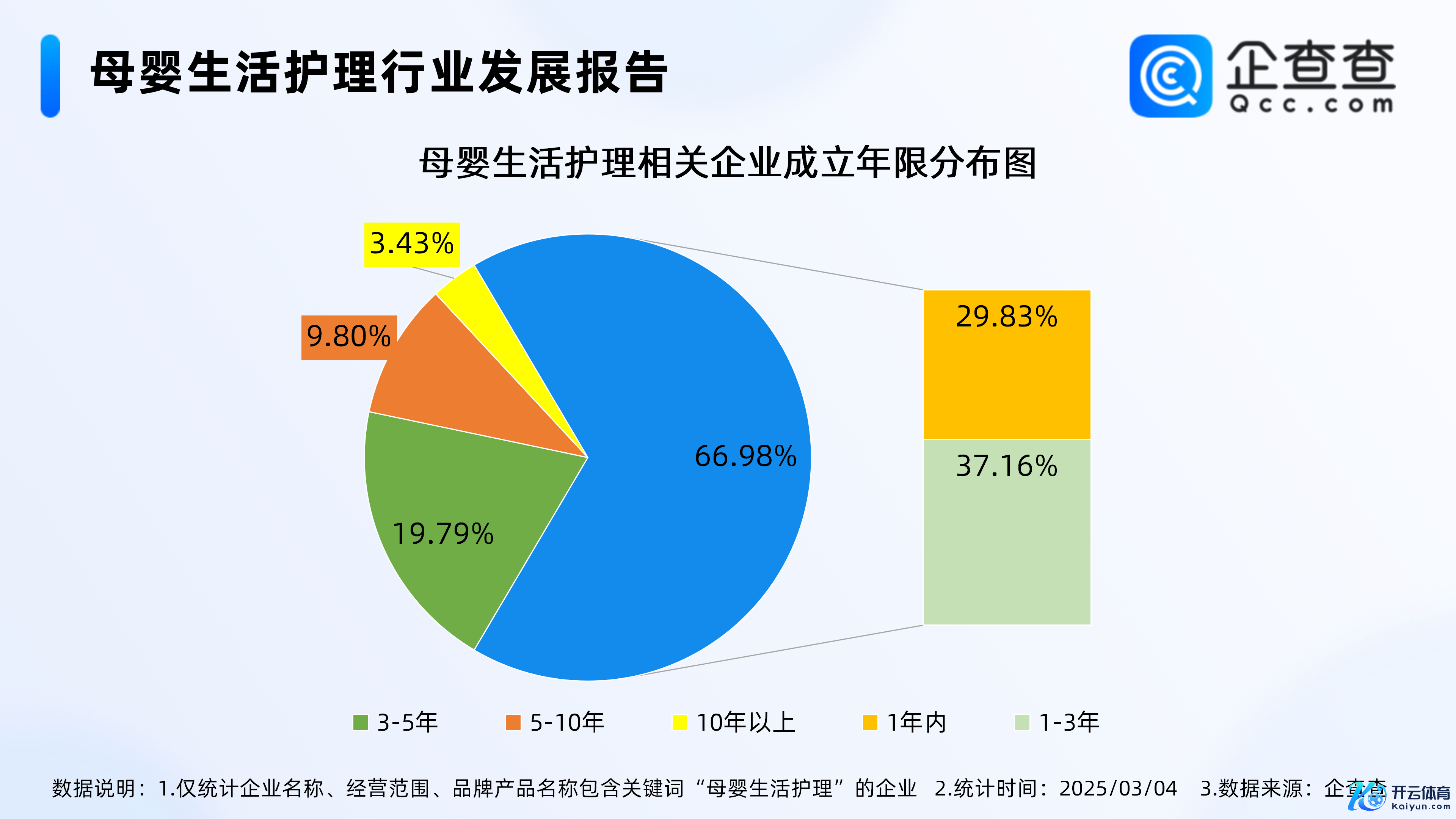 企查查数据解析,从开灾年限漫衍来看,母婴生涯照应联系企业多蚁合开荒在近三年,其中开灾年限在1-3年的联系企业最多,占比37.16%,其次,在1年内的联系企业占比29.83%。开灾年限在10年以上的联系企业占比仅3.43%。